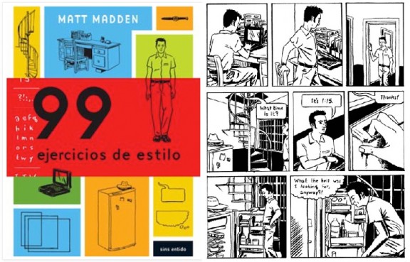 Un viejo recurso argumental: repetir la misma historia desde puntos de vista diferentes, o en este caso, desde diversos estilos; ’99 ejercicios de estilo’ es obra de Matt Madden.La clave es una serie de cómics de una página que cuentan la misma historia de formas diferentes. Matt Madden se inspira en el libro de Raymond Queneau, ‘Ejercicios de estilo’, habitual en cualquier curso de escritura creativa, para mostrarnos la gran cantidad de posibilidades que hay al alcance de cualquier narrador. ’99 ejercicios de estilo’ fue publicado por primera vez en Estados Unidos por la editorial Penguin Books, y ha tenido gran éxito en Japón, Francia, Italia y Bélgica.