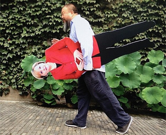 El artista y disidente chino Ai Weiwei mostró hoy una vez más su faceta más irreverente al bromear sobre la canciller alemana, Angela Merkel, durante la esperada visita de la mandataria a Pekín.