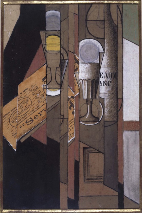 ‘Verres, journal et bouteille de vin’ (1913, Juan Gris)