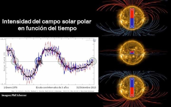 El Sol cambia de polaridad con una precisión estimada de 11 años, coincidiendo con la cota más alta de actividad dentro de la estrella.