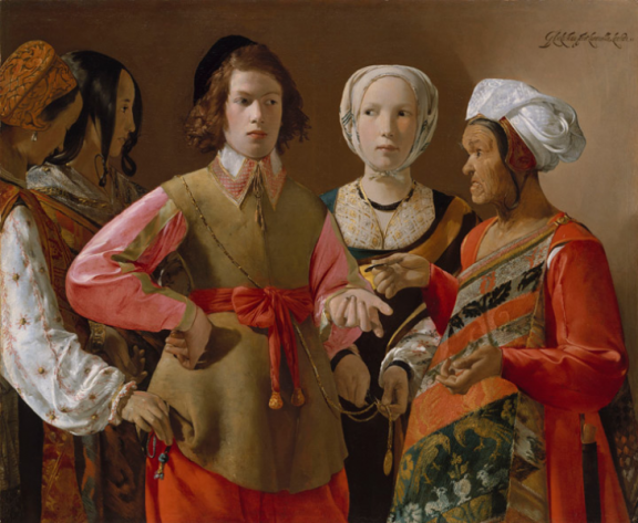 Cuentan de él que fue un clásico de personalidad fría y misántropa, “desabrido”, producto de un pequeño país (el Ducado de Lorena) que fue engullido por la misma Corona Francesa para la que él trabajaría luego como pintor de Corte, aunque todavía en su tierra natal. Fue Luis XIII, responsable de que la patria lorenesa pasara a ser francesa, quien terminó de consagrarle como uno de los “elegidos” que vivían del arte sin problema. Pero esa estabilidad, un sueño inalcanzable para muchos otros, no le restó pequeñas amarguras que se traducirían en un estilo de pintura perfectamente identificable. Escenas que suman tres factores: recogimiento espiritual, fuentes de luz difusas que luchan contra la oscuridad (hasta el punto de reducir a la mínima expresión el arco de tonalidades; si hubieran sido en blanco y negro no habrían variado mucho) y un lirismo contenido que se traduce en un profundo silencio formal. Sus personajes apenas se mueven, casi parecen estatuas dotadas de expresiones de serenidad, soledad y silencio a partes iguales.
