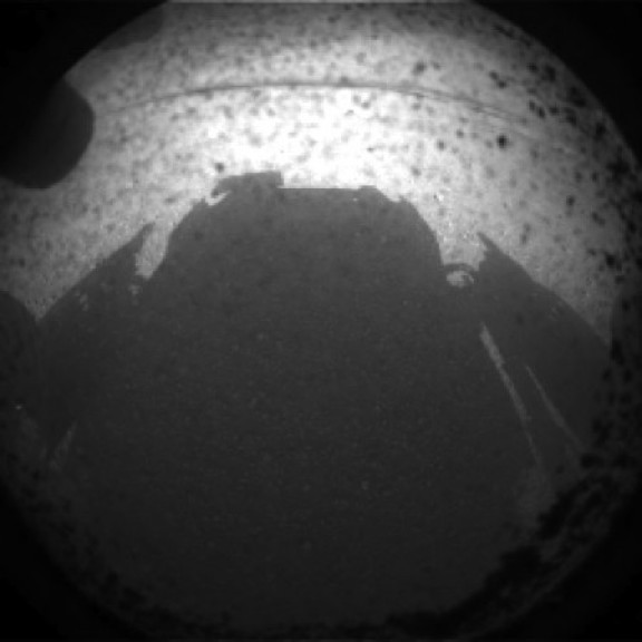Primera fotografía del robot Curiosity sobre Marte, con la sombra proyectada por el Sol