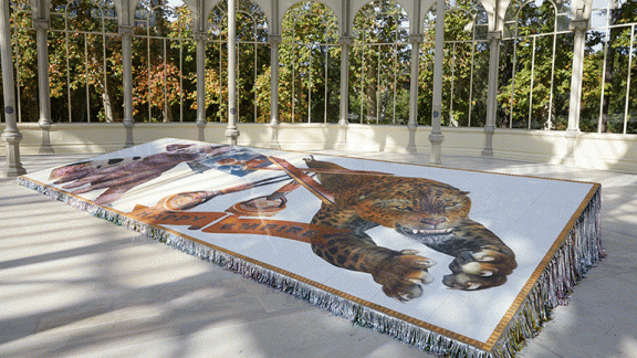 Su trabajo engarza al mismo tiempo elementos familiares y comunes con contenidos cuyo sentido es huidizo y poco evidente para producir formas que estimulen la imaginación, sugieran cuestiones fundamentales, seduzcan y provoquen extrañamiento, confronten expectativas, propongan misterios, así como que ayuden a rearticular nuestras experiencias a través del desplazamiento de las estructuras de poder. Para su exposición en el Palacio de Cristal del Parque del Retiro (hasta el 1 de marzo próximo), Khan toma como punto de partida el tumultuoso populismo actual y su intrigante método para intervenir en lo grotesco.