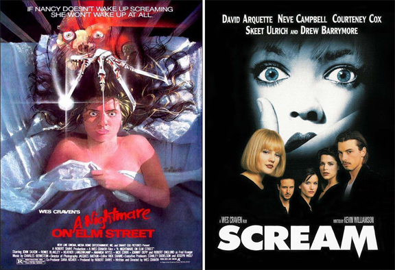 Todo empezó en los años 70 cuando dirigió ‘La última casa a la izquierda’, donde ya daba pistas de por dónde debía revitalizarse el terror: adolescentes, psicópatas y psicología aplicada para infundir un miedo más profundo que el monstruo. Porque no hay peor miedo al verdadero monstruo, el ser humano. Mejor dicho, inhumano. Suya fue también ‘Las colinas tienen ojos’ (otra película mítica del terror donde las haya), que terminó de darle lustre a su arranque renovador. No obstante sólo estaba en los márgenes. No había alcanzado aún el corazón del género pero ya había empezado a mezclar: sus guiones (porque escribía y dirigía) se salpimentaban con humor, algo novedoso que no rebajaba el tono siniestro final. Y a la gente le gustó.