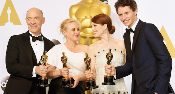 Los intérpretes ganadores: Simmons, Arquette, Moore y Redmayne