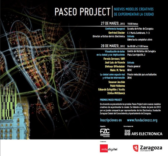La Fundación Zaragoza Ciudad del Conocimiento y Ars Electronica, en colaboración con el Ayuntamiento de Zaragoza, lanzan el seminario de formación ‘Paseo Project: nuevos modelos creativos de experimentar la ciudad’ (27 y 28 de marzo).