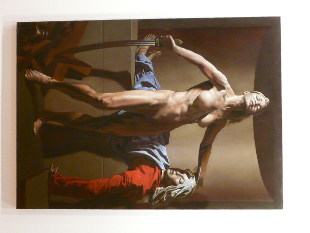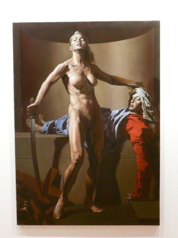 Desde el 1 de marzo hasta el 5 de mayo puede verse en el DA2 salmantino esta exposición subtitulada ‘(De)construcciones de lo femenino en la sociedad contemporánea’, y que deja bien claro qué universo aborda: el de la mujer en el mundo actual, haciendo un viaje de ida y vuelta en la representación tradicional femenina en la pintura y cómo las ven actualmente una larga nómina de artistas reunidos en las salas del DA2 por Paco Barragán. ‘De Madonna a Madonna’ abre sus puertas al espectador con un cuadro en el que aparece una hipermusculada cantante Madonna, con físico masculinizado pero todos los atributos femeninos, sosteniendo en su mano la cabeza cortada de una mujer que es… ella misma.