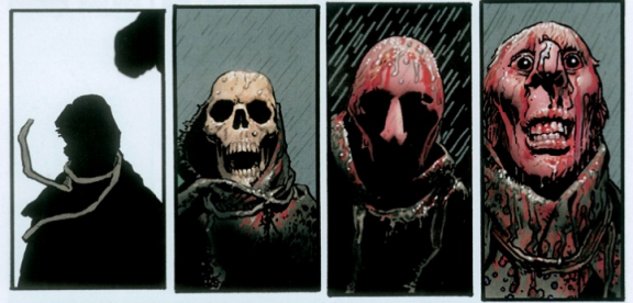 Pero en este caso Corben extiende un puente viable, claustrofóbico, victoriano, retro y grotesco. Si han visto las Pinturas Negras de Goya sabrán de qué hablamos. Los relatos recogidos son ‘Solo’, ‘La ciudad en el mar’, ‘La durmiente’, ‘La cita’, ‘Berenice’, ‘Morella’, ‘Sombra’, ‘La caída de la casa Usher’ (imprescindible de Poe), ‘Los asesinatos de la calle Morgue’ (hablando de clásicos eternos que lo cambian todo…), ‘La máscara de la Muerte Roja’ (fundamental), ‘El gusano conquistador’, ‘El entierro prematuro’, ‘El cuervo’ y ‘El barril de Amontillado’. Sólo falta el archiconocido pozo con péndulo y lista la suma perfecta de Poe.